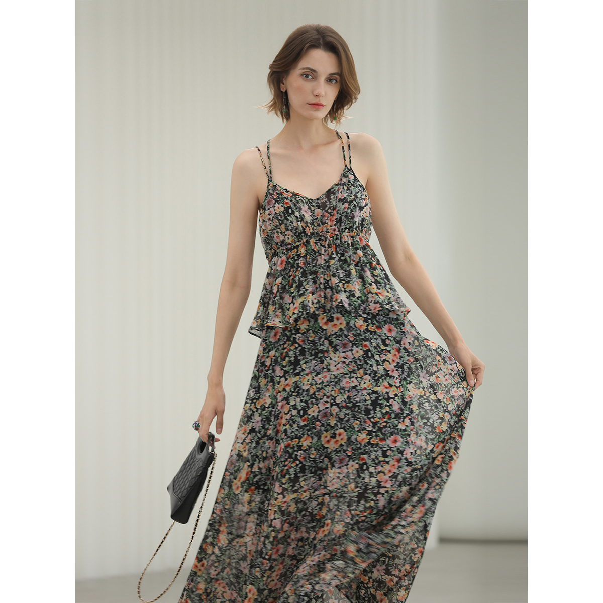 新款 25夏季 优雅复古雪纺层叠蛋糕裙连衣裙 商场同款 LULUALWAYS
