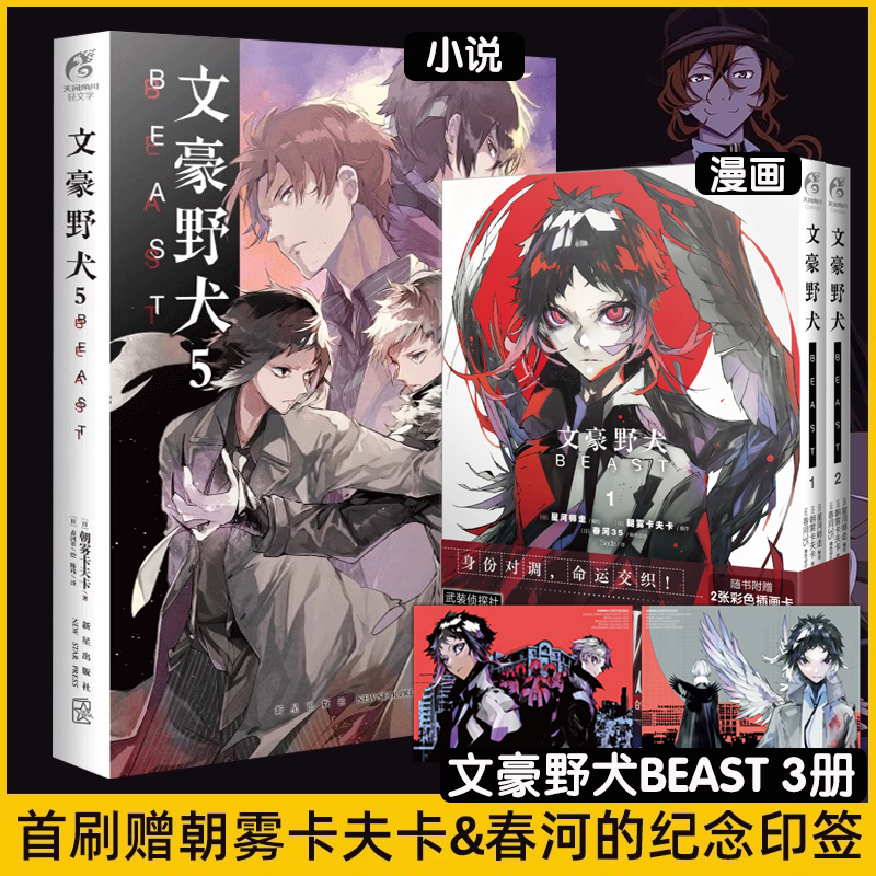 文豪野犬漫画BEAST1 全套5册正版 简中文版 彩色插画卡X4 文豪野犬if线漫画小说实体书天闻角川动漫画书 限量特典亚克力砖