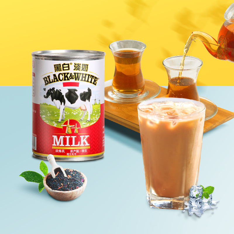 荷兰黑白淡奶400g 奶茶专用原料 12罐进口黑白全脂淡奶港式