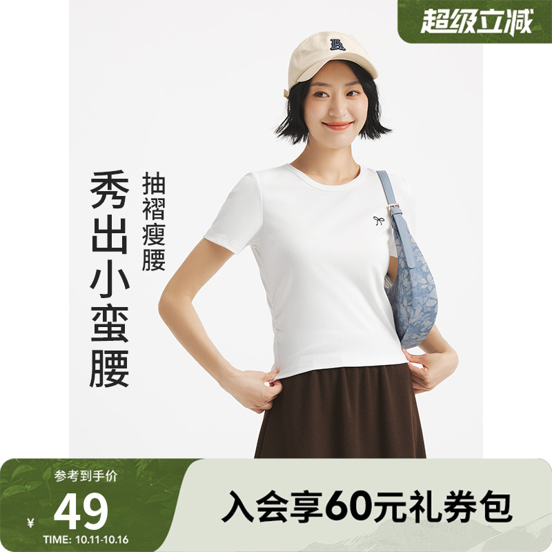 蝴蝶结短T恤白色打底衫 热风女士短袖 修身 新款 T恤上衣2025年秋季