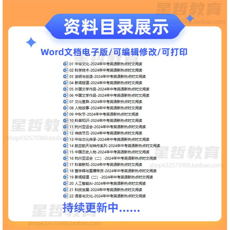 2025年中考英语新热点时文重要事件阅读理解习题训练真题电子版