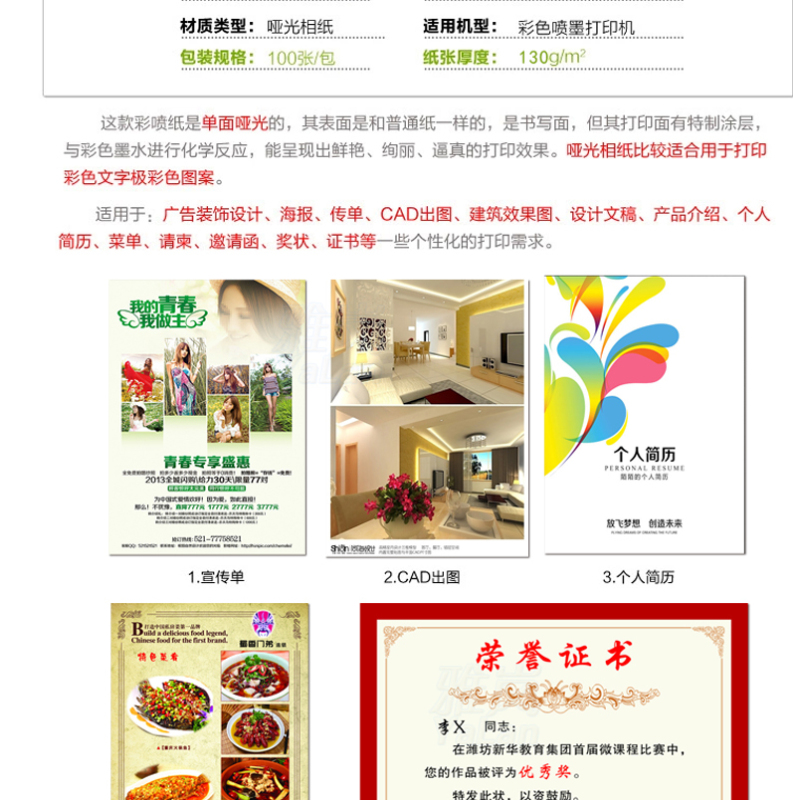 雅岚110克A4彩色喷墨打印纸单面哑光彩喷纸喷墨纸广告宣传单纸