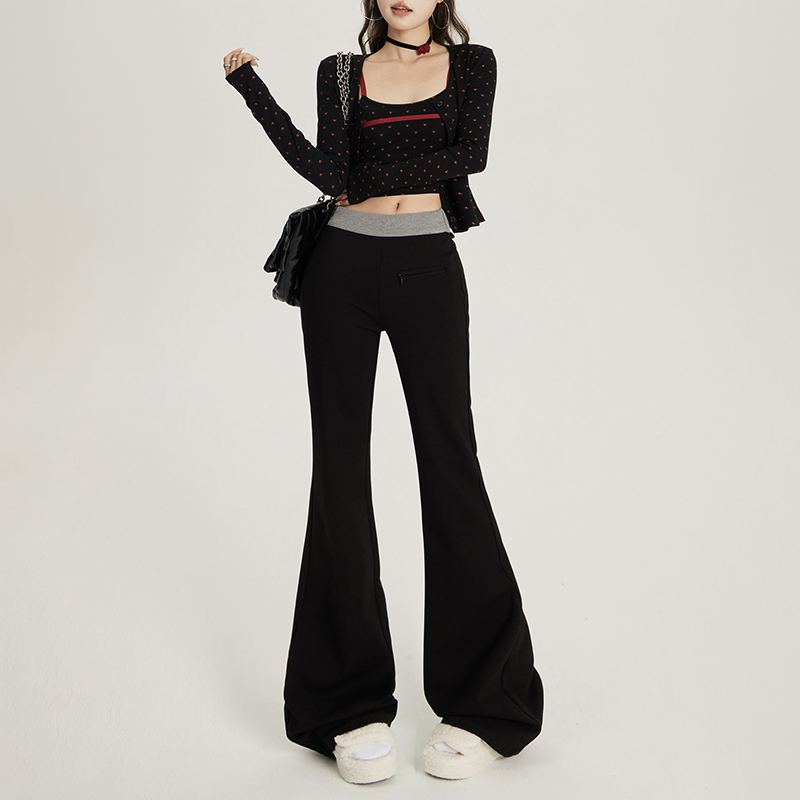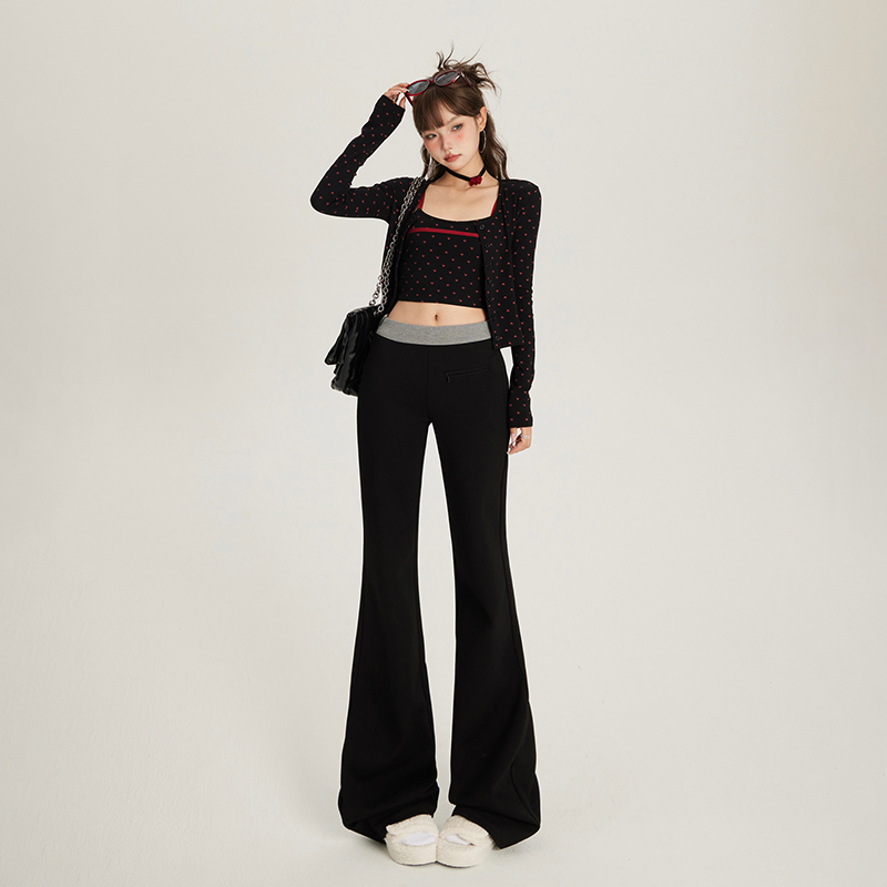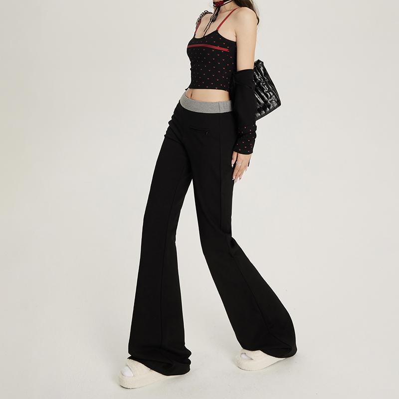 女 百搭秋冬拼接休闲裤 KRO秋冬加绒复古辣妹修身 显瘦弹力喇叭裤
