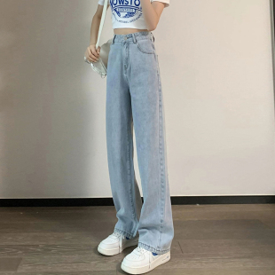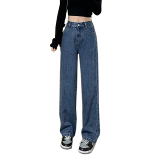复古高腰宽松显瘦垂感直筒拖地裤 阔腿牛仔裤 秋款 爆款 子 女2025新款