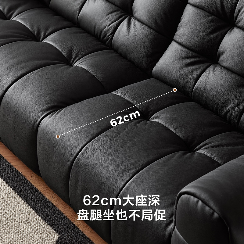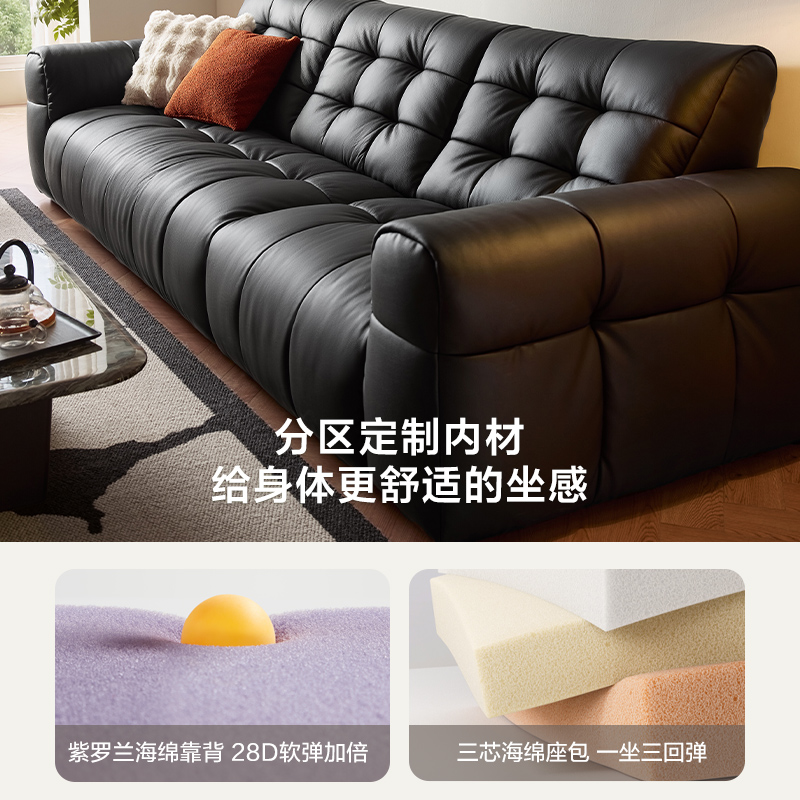 林氏木业大黑熊真皮沙发客厅黑色头层牛皮直排沙发林氏家居补贴