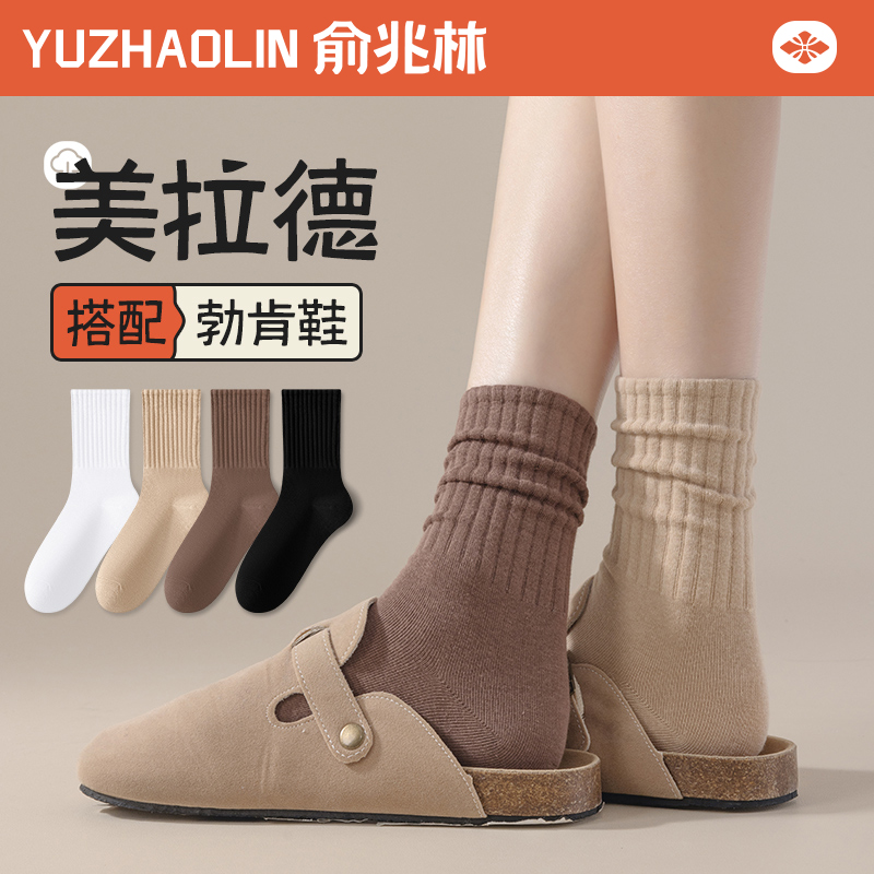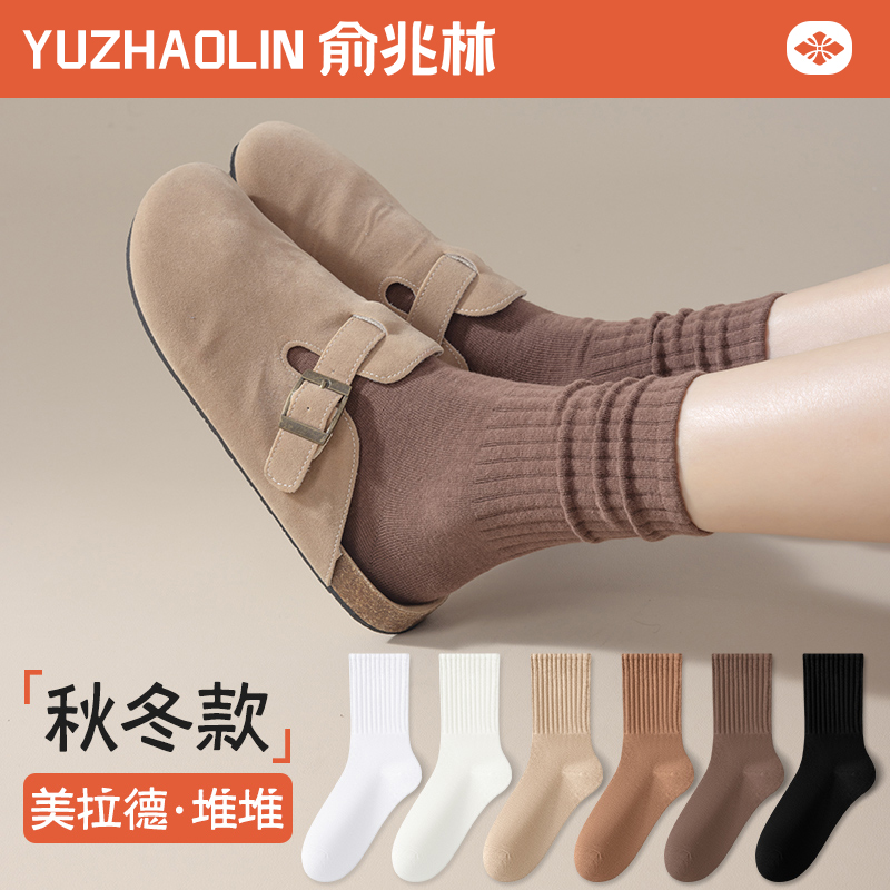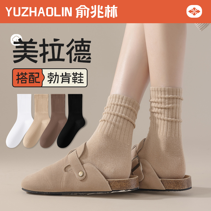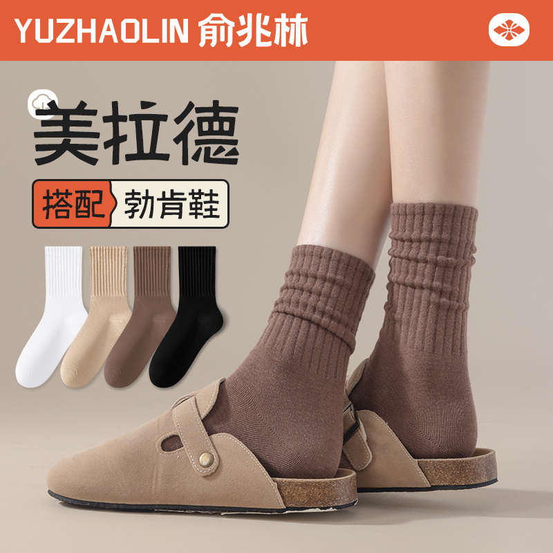 纯棉无骨运动长袜配勃肯鞋 爆款 2025新款 堆堆袜子女中筒袜春秋冬季
