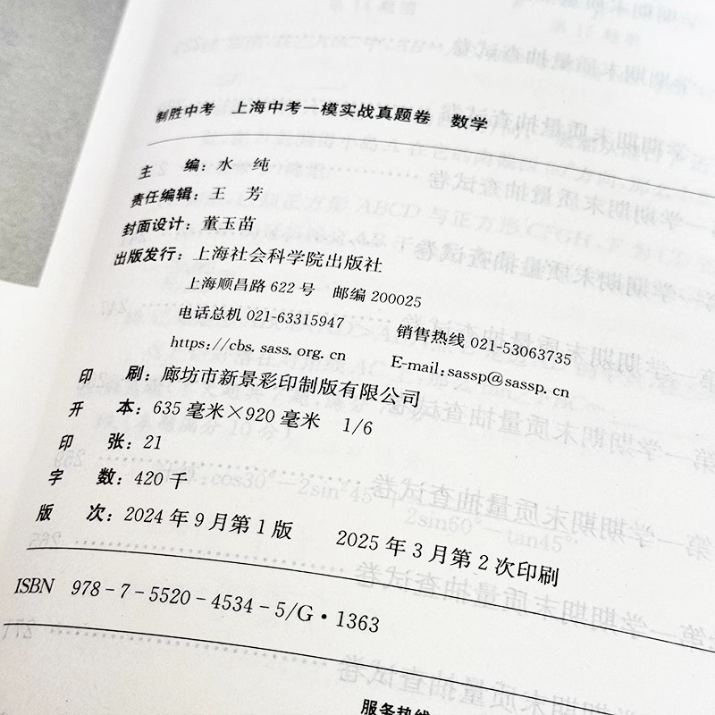 2022 社 2025年制胜中考上海中考一模实战真题卷数学仅试卷四年合订本上海市各区初三初中九年级期末模拟试卷上海社会科学院出版
