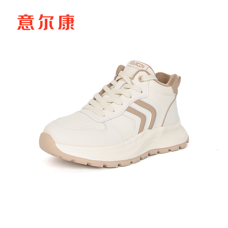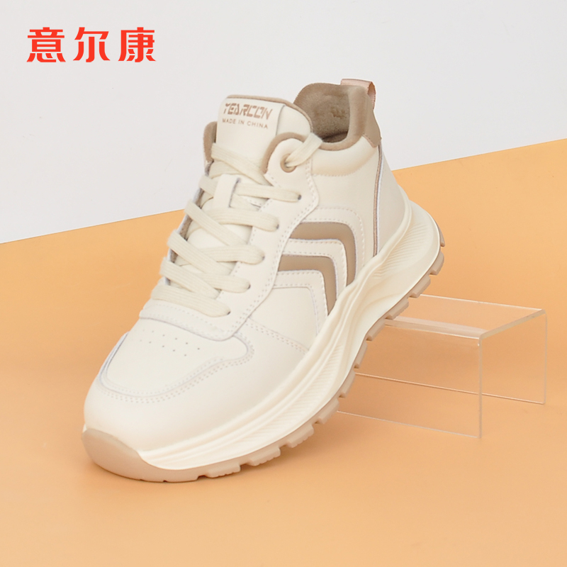 新款 2024冬季 棉鞋 加绒高帮小白鞋 意尔康正品 女软底百搭休闲鞋 女鞋