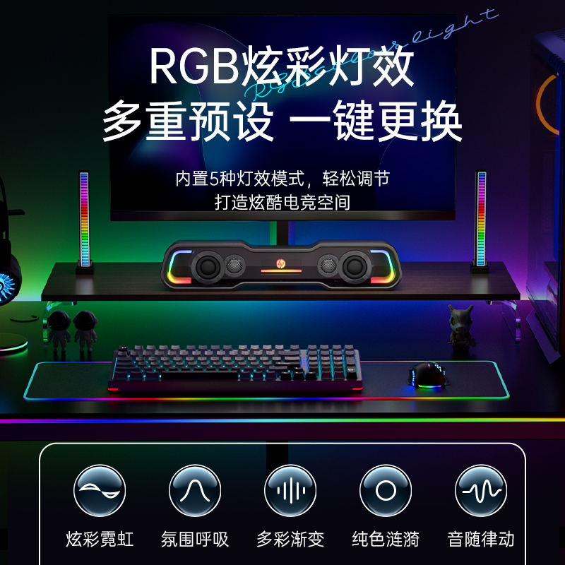 HP惠普电脑音响台式 家用电竞游戏桌面有线音箱蓝牙USB低音炮喇叭
