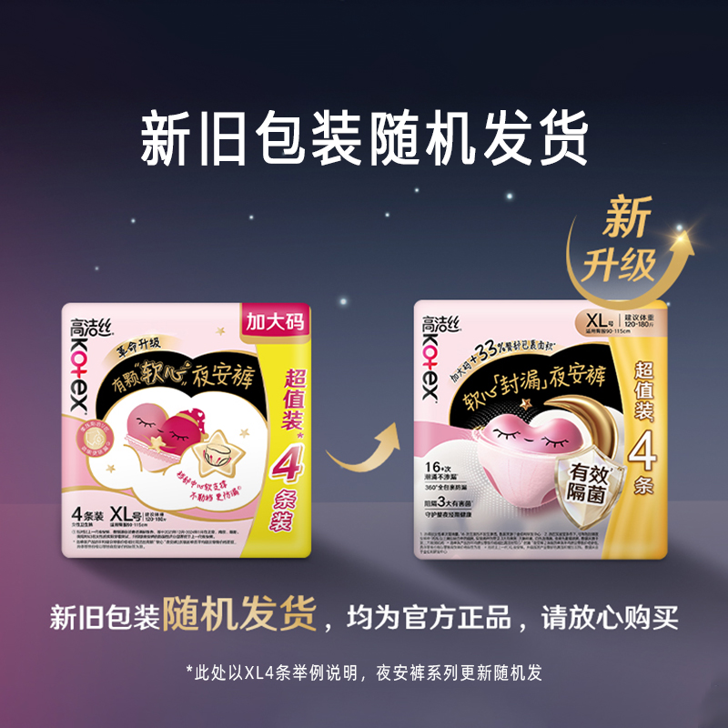 XL码 裤 护舒宝散热考拉安睡裤 4条安心裤 型卫生巾 顺手带1件
