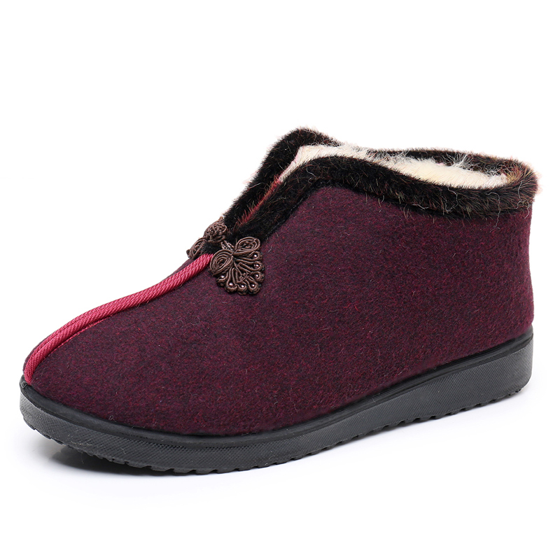 软底休闲中老年人加绒高帮皮面妈妈鞋 足力健旗舰店2024年冬季 新款