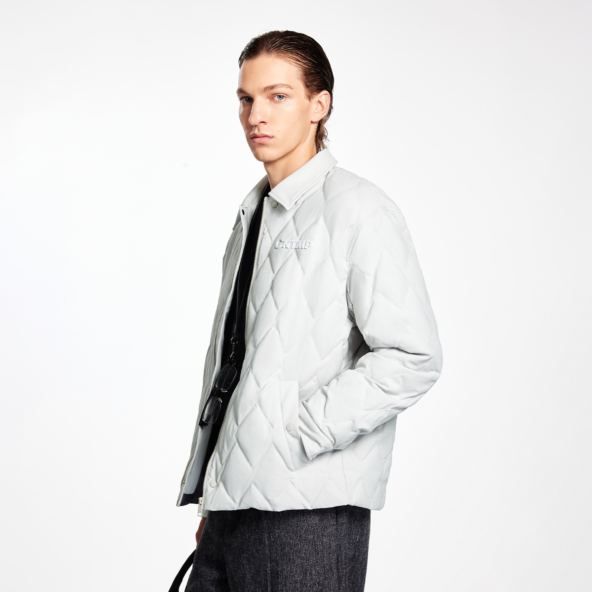 领外套潮 拼接撞色翻领秋冬菱格衬衫 袂绒轻薄羽绒服女短款 2025新款