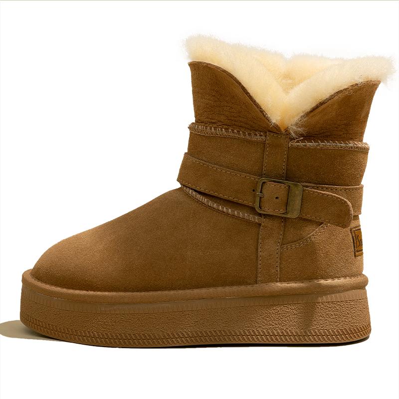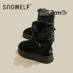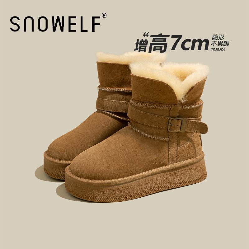 真皮毛毛加厚棉鞋 保暖翻口加绒厚底中筒雪地靴女增高2025冬季 新款
