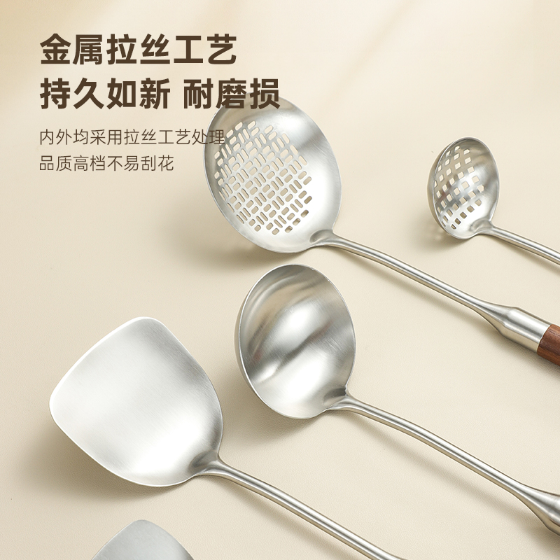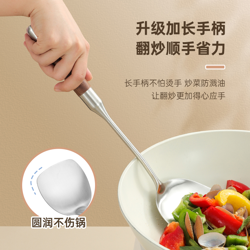 锅铲316L不锈钢加厚炒菜铲子漏勺小汤勺家用厨具炒勺套装 小铁铲