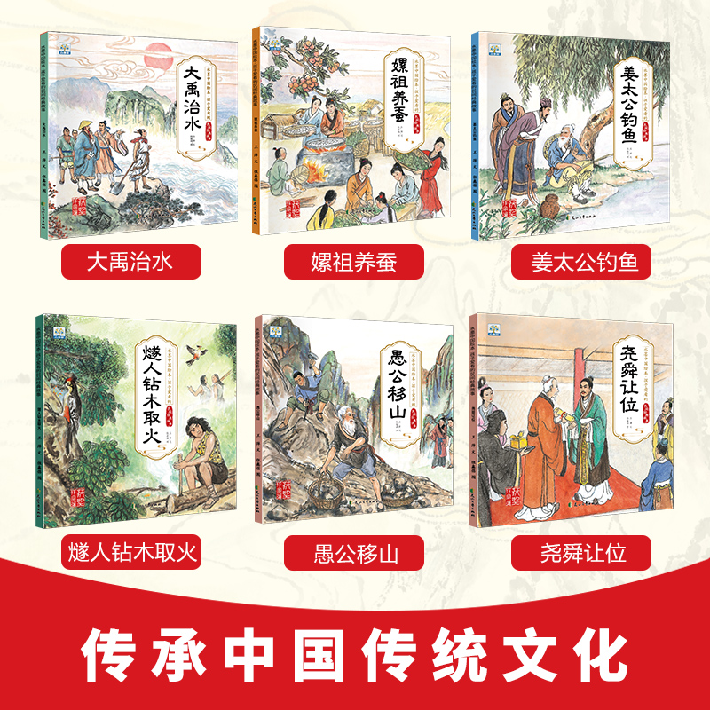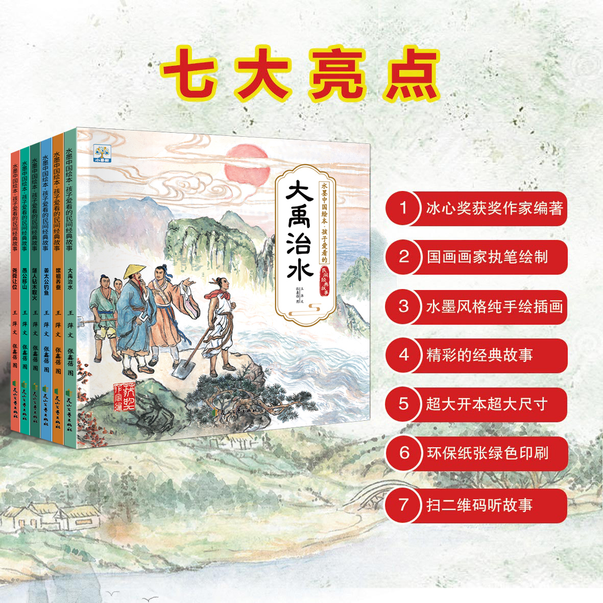 愚公移山姜太公钓鱼大禹治水儿童绘本3–6岁古代神话故事民间童书宝宝睡前读物益智连环画 全套6册 中国经典 故事水墨中国绘本系列