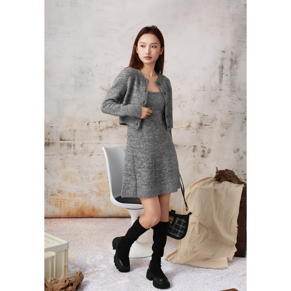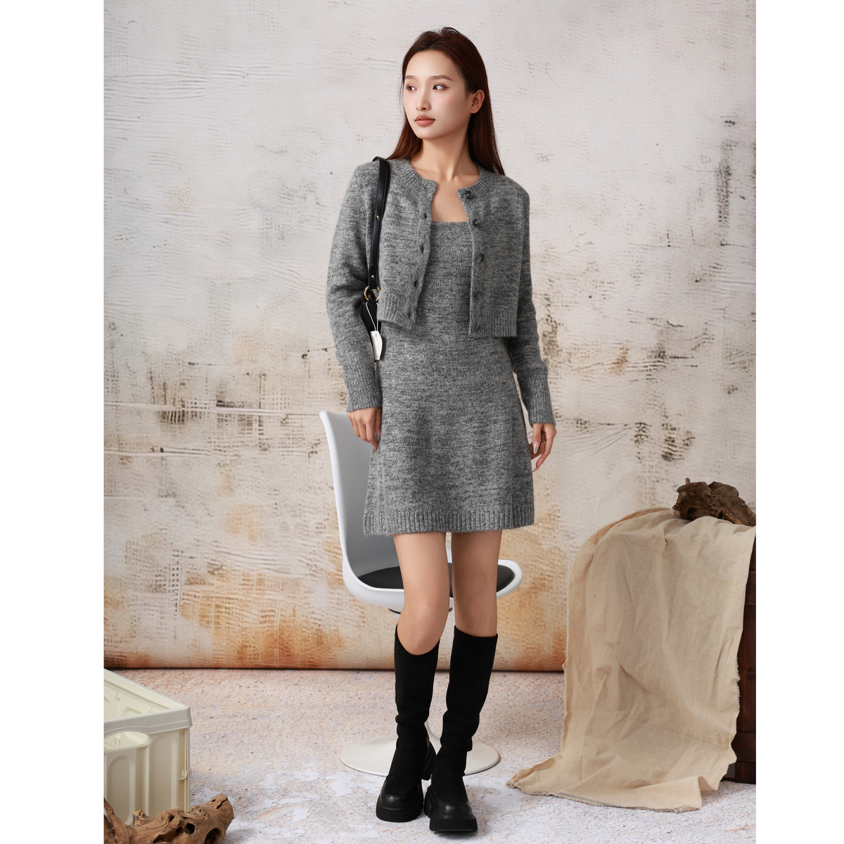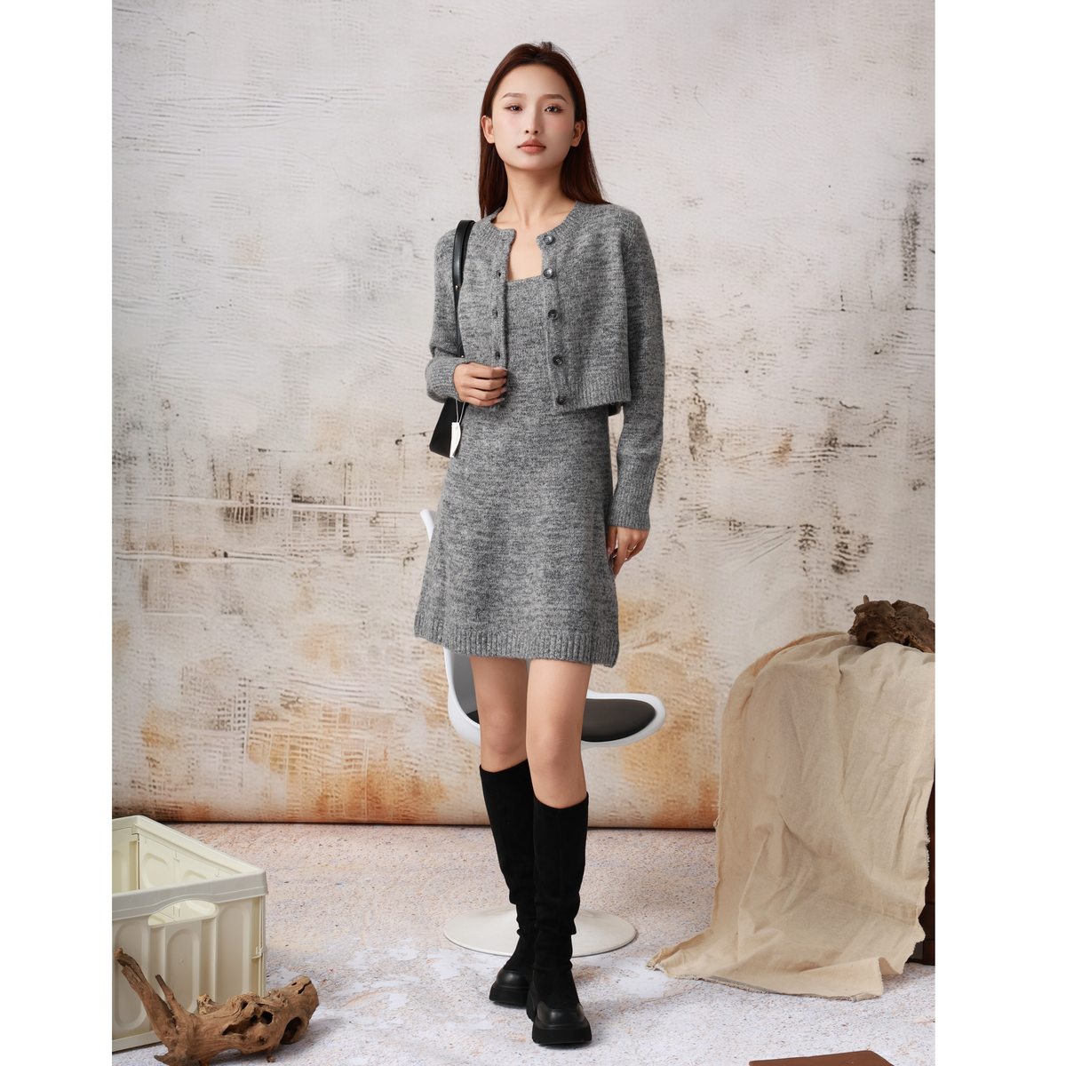 西町村屋简约针织内外套女秋冬新款 裙子两件套XA9D10013 气质开衫