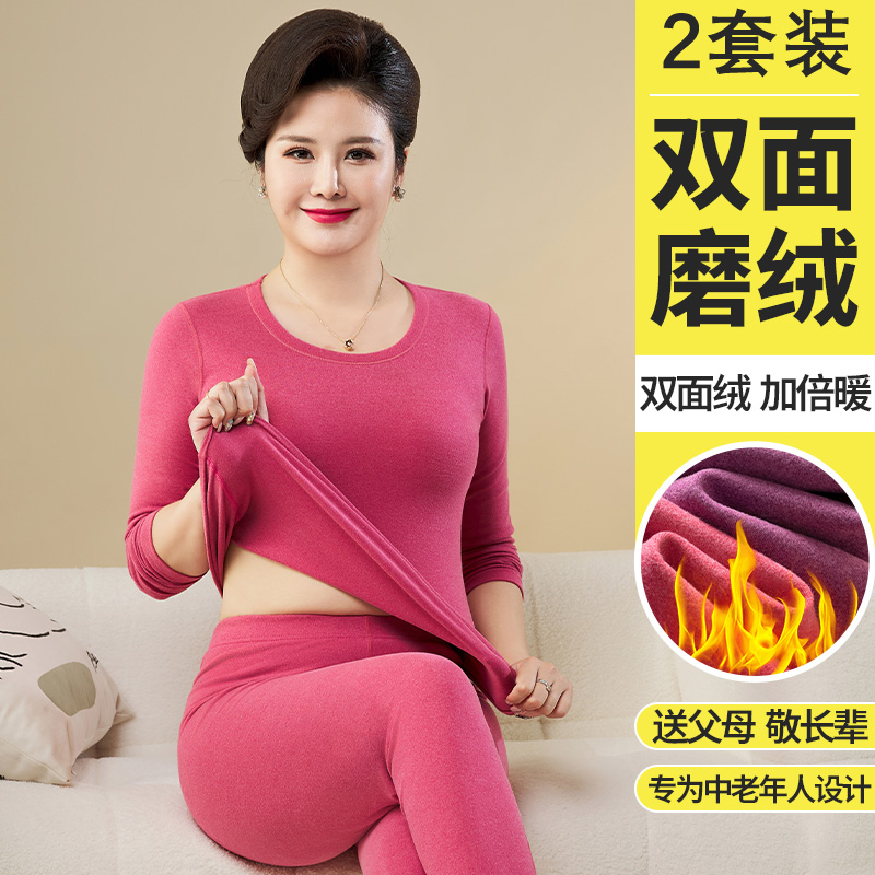 保暖内衣套装 全棉青少年中老年棉毛衫 男女士薄款 红豆纯棉秋衣秋裤