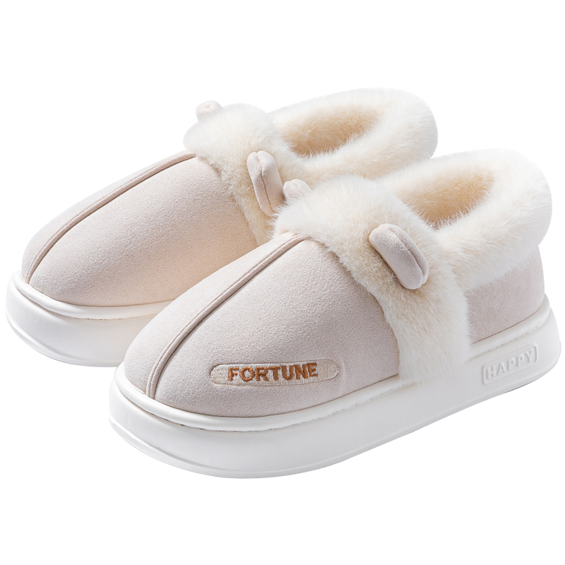 室内家居加绒保暖防滑棉鞋 外穿厚底2024新款 女 女士冬季 包跟棉拖鞋
