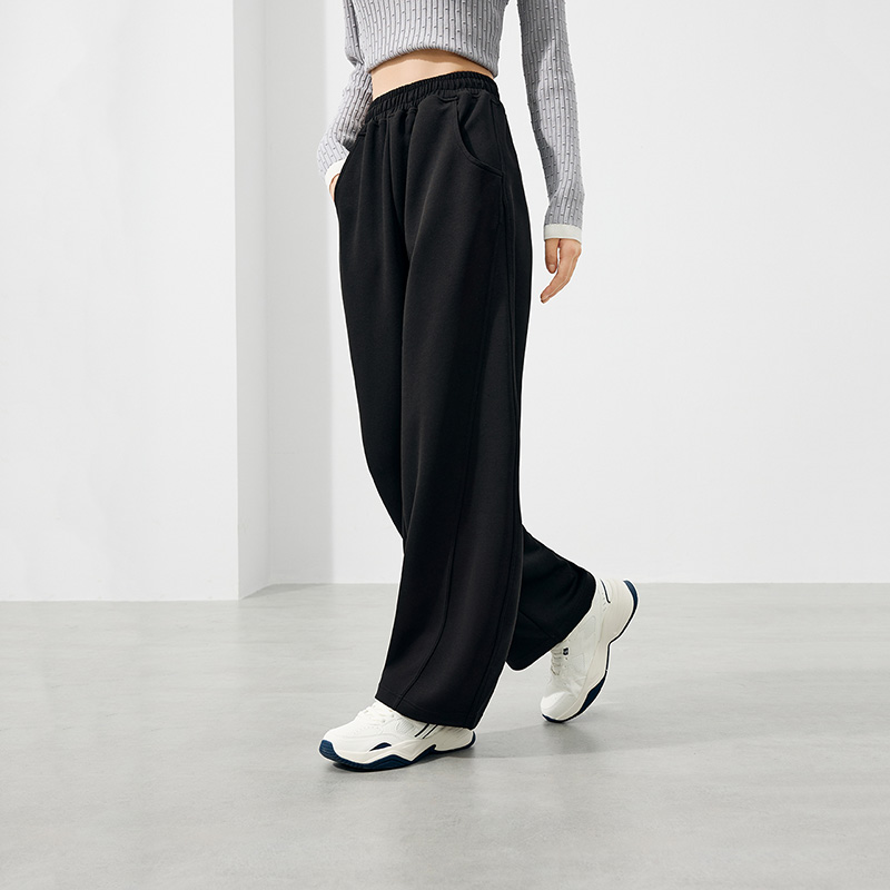 运动长裤 休闲跑步收口卫裤 女裤 透气黑色针织裤 子 秋季 安踏奶芙裤