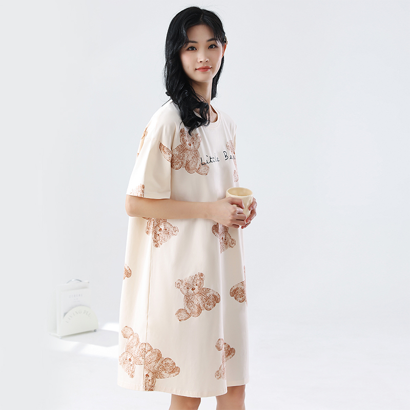 睡衣家居服女生夏天性感连衣裙 可爱短袖 芬腾睡裙女士夏季 纯棉薄款