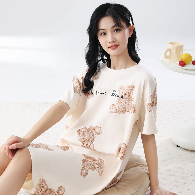 家居服497886 甜美宽松柔软优可丝短袖 三福女夏季 萌趣卡通睡裙