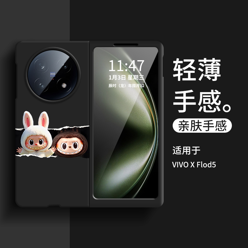 手机壳vivoxfold5pro保护套磨砂硬壳双面vivoxfold5防摔折叠屏后壳男女网红 Fold5新款 可爱拉卡通适用vivo
