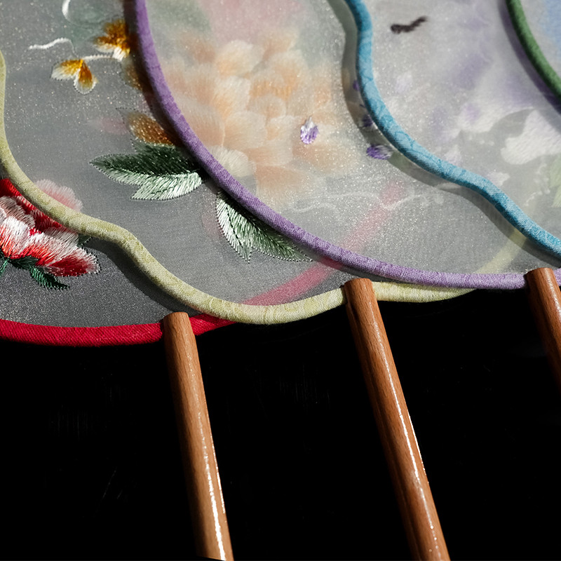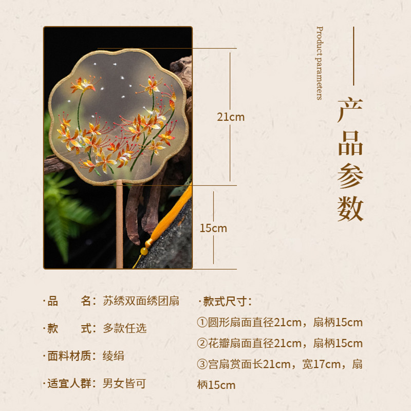 苏绣双面刺绣团扇儿童郊游古风圆扇舞蹈走秀扇子 151金银花
