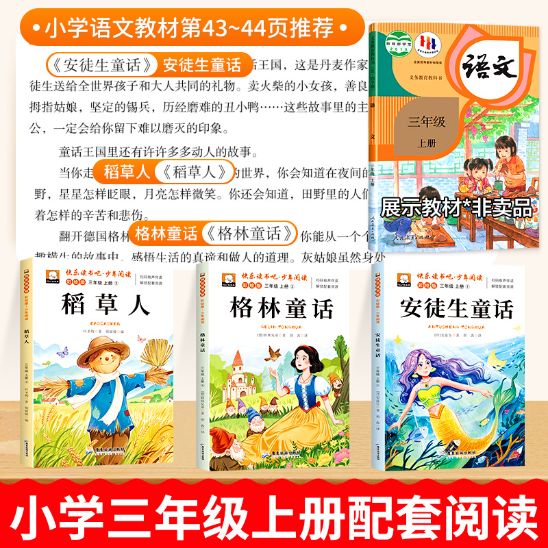 小学生书籍同步人教版 课外书叶圣陶格林童话安徒生童话故事快乐读书吧三上阅读书目老师推荐 稻草人书三年级上册必读正版 全套3册