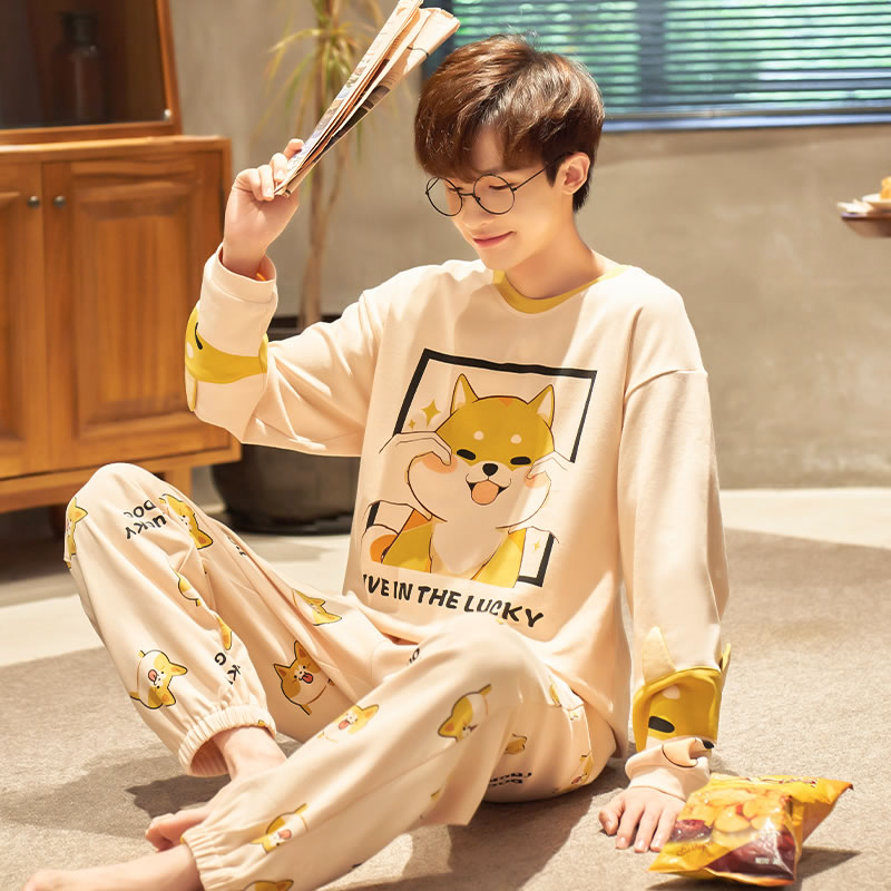全棉休闲家居服套装 2025新款 可外穿 纯棉长袖 猫人睡衣男春秋冬季