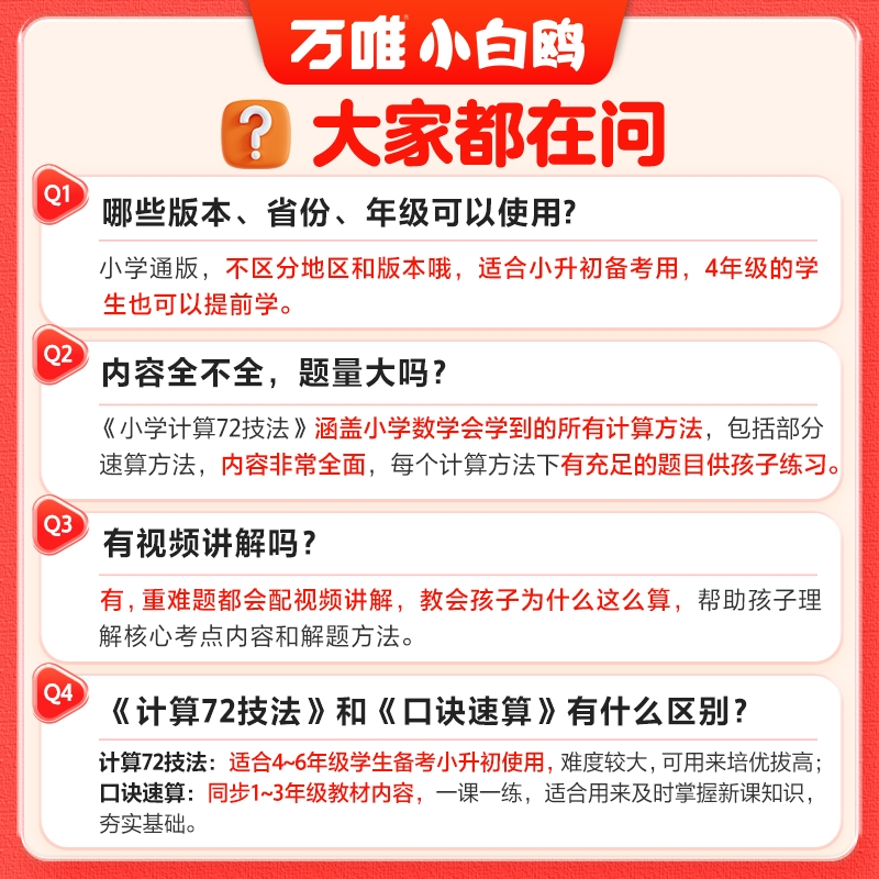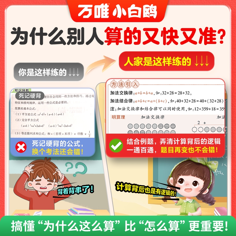 唯小白鸥小学计算72技法数学速算技巧心算口算四五六年级计算题方法教程大全巧练练习册解题思维强化训练专项速记口诀科学算法基础