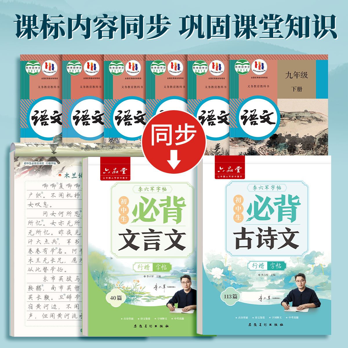 六品堂行楷行书初中必背古诗词和文言文中学生高中生古诗文初一七年级上册人教版 字帖 语文同步小升初适合字帖初中生专用练字帖练