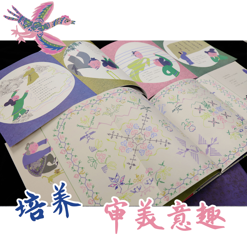 亲近自然朴素之美 技艺和力量 崇尚勤巧灵动之气 传承古老 2.以原创图 和孩子一起浸染其中 非遗技艺传承绘本·金绣娘