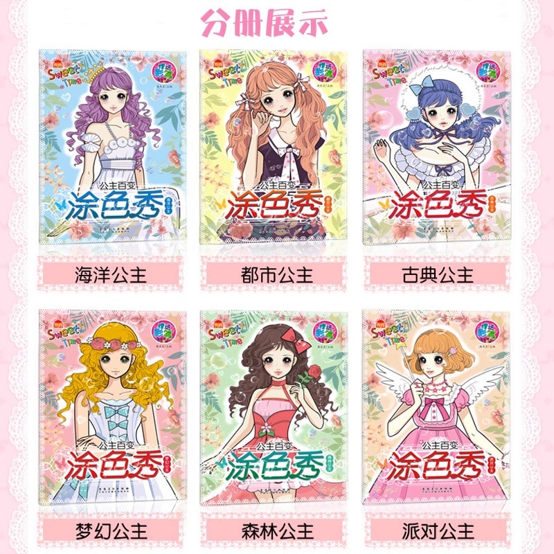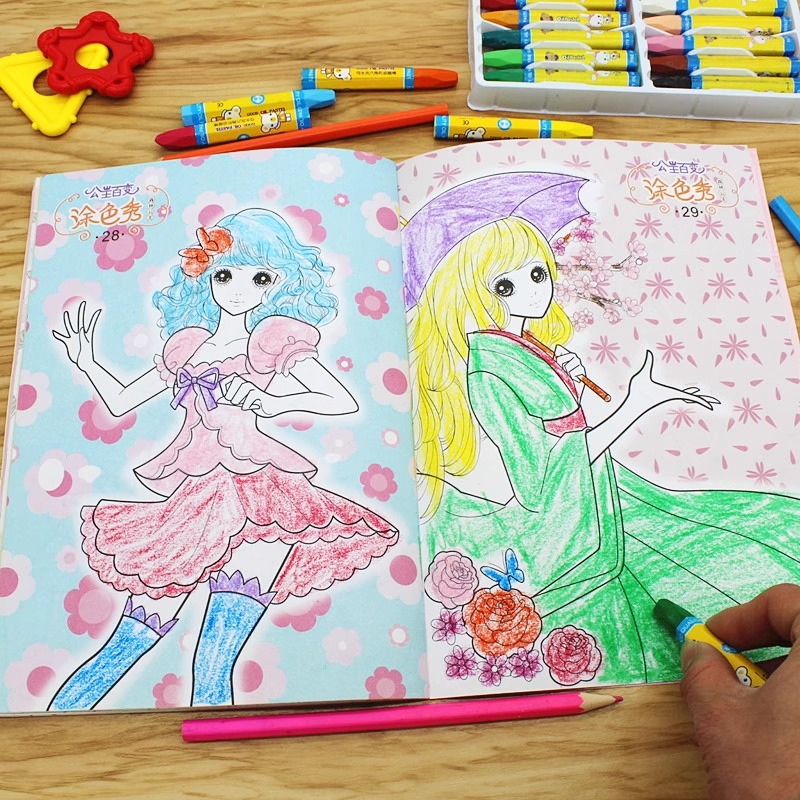 10岁儿童填色小学生涂色书涂鸦画本蜡笔 公主美少女涂色本3