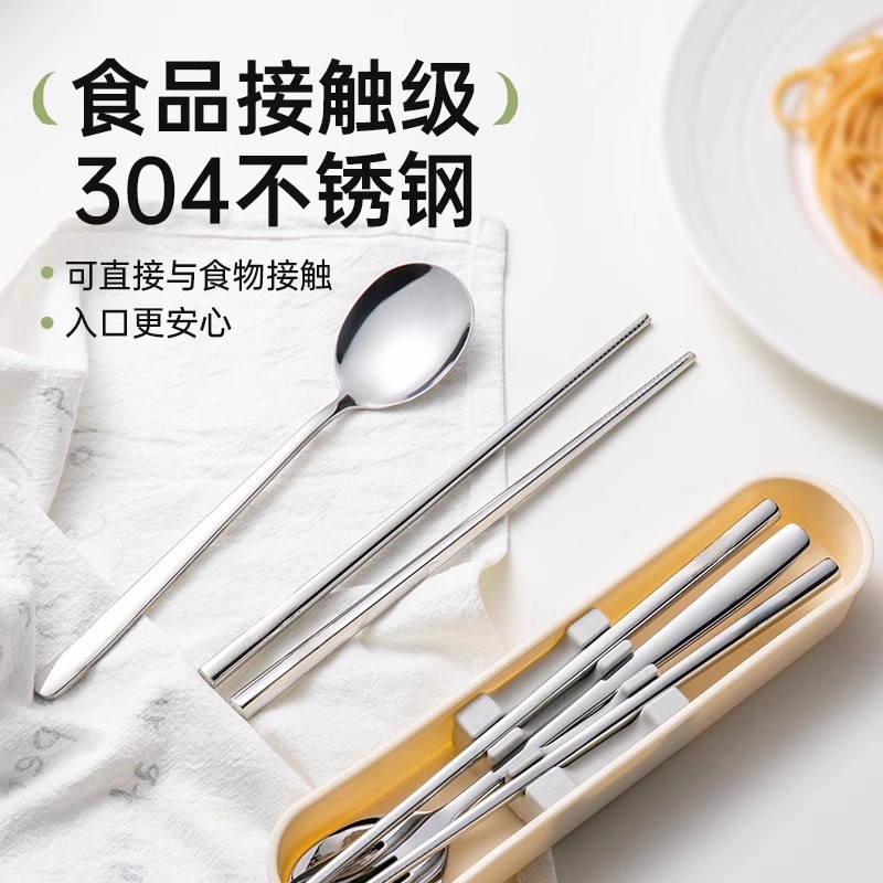 316不锈钢筷子勺子套装 一人用便携餐具盒上班族小学生收纳盒筷勺