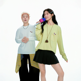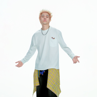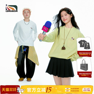 初秋上衣打底体恤衫 lemanism潮牌腊肠狗口袋纯色长袖 T恤男情侣款