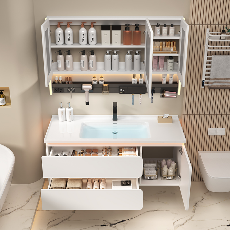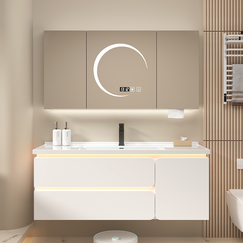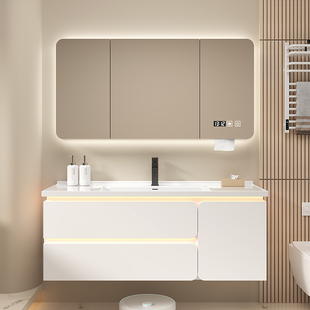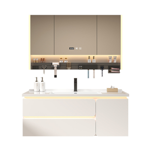 实木浴室柜组合卫生间洗漱台洗手池洗脸盆柜智能多功能镜柜感应灯