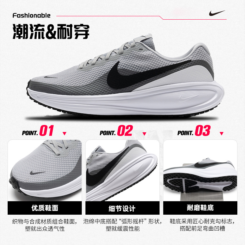 缓震透气网面运动灰色跑步鞋 Nike耐克男鞋 秋季 2025新款 男 官方正品