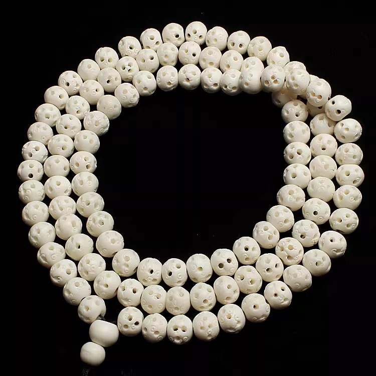 藏式 DIY菩提佛珠文玩手链配饰 天然牛骨原白雕刻镂空散珠隔珠圆珠