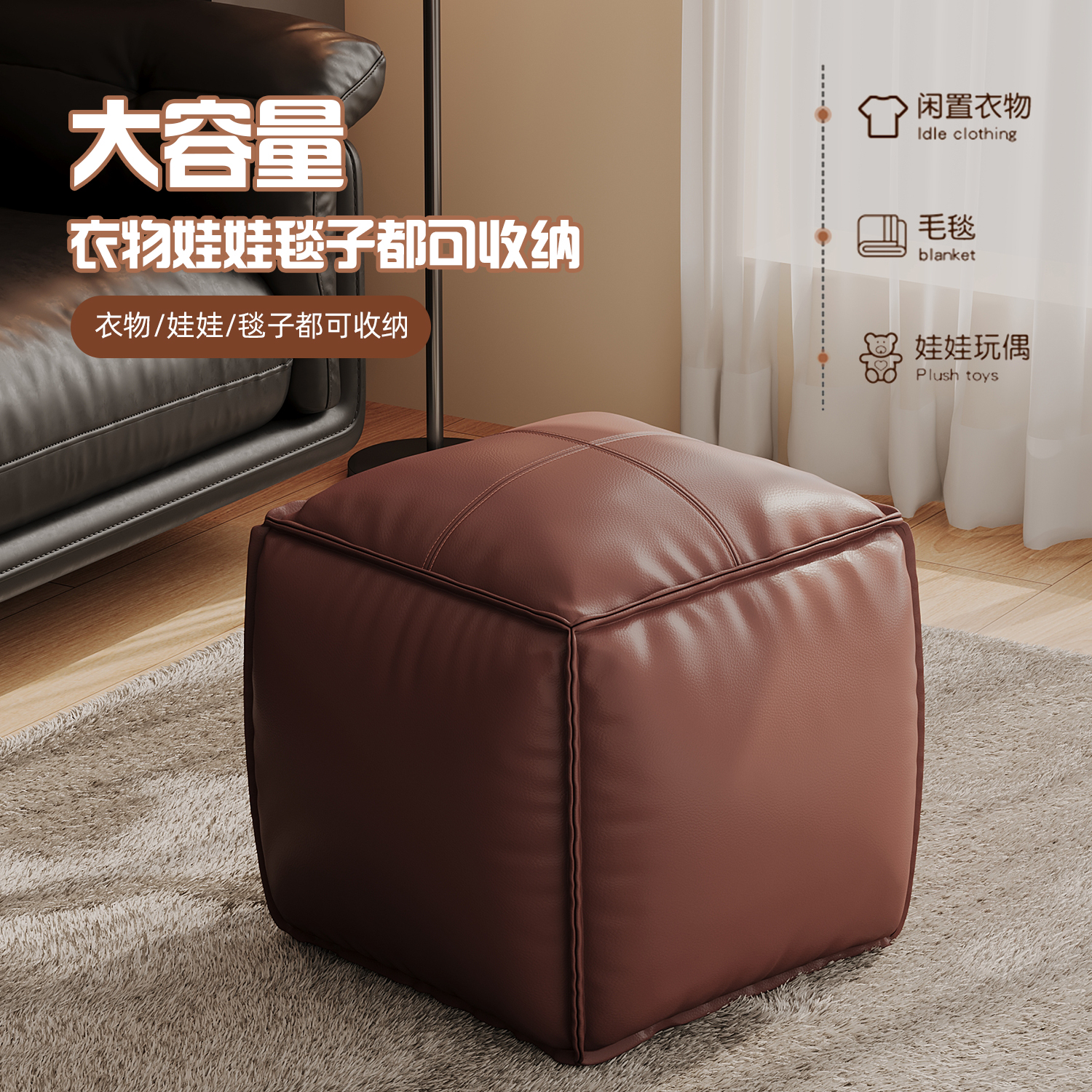 轻奢皮墩软凳子可躺可睡单人沙发椅旧衣服收纳坐墩换鞋 矮凳收纳袋
