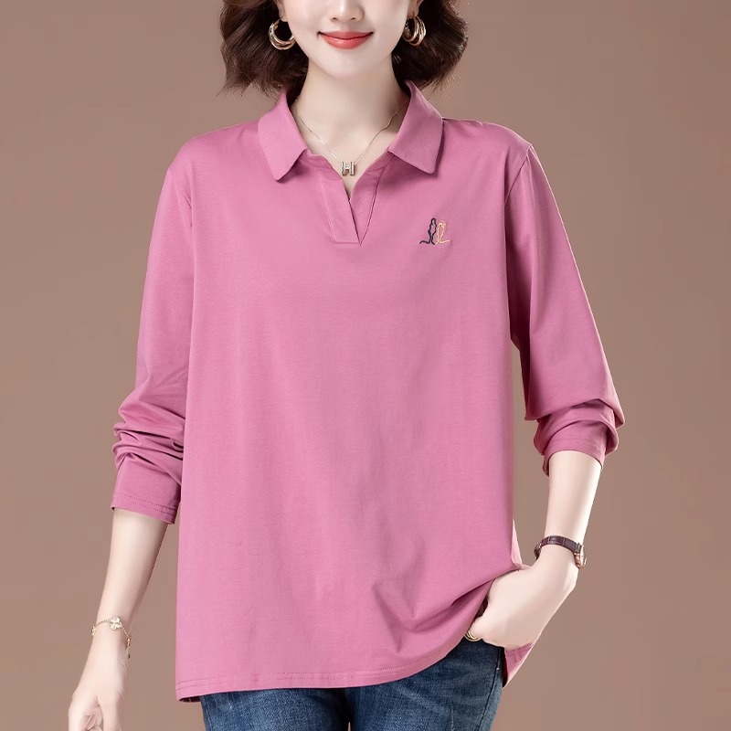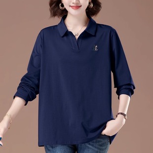 t恤女纯棉polo衫 中老年女装 翻领长袖 妈妈新款 早秋上衣加肥加大码