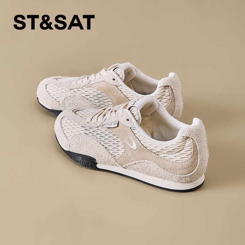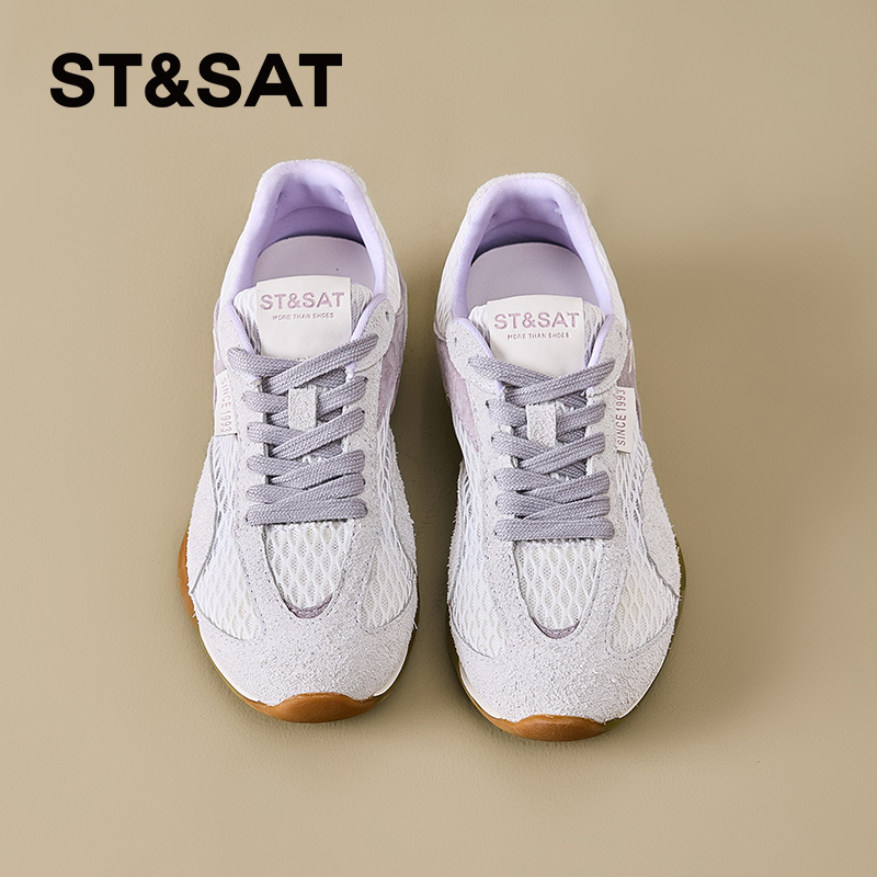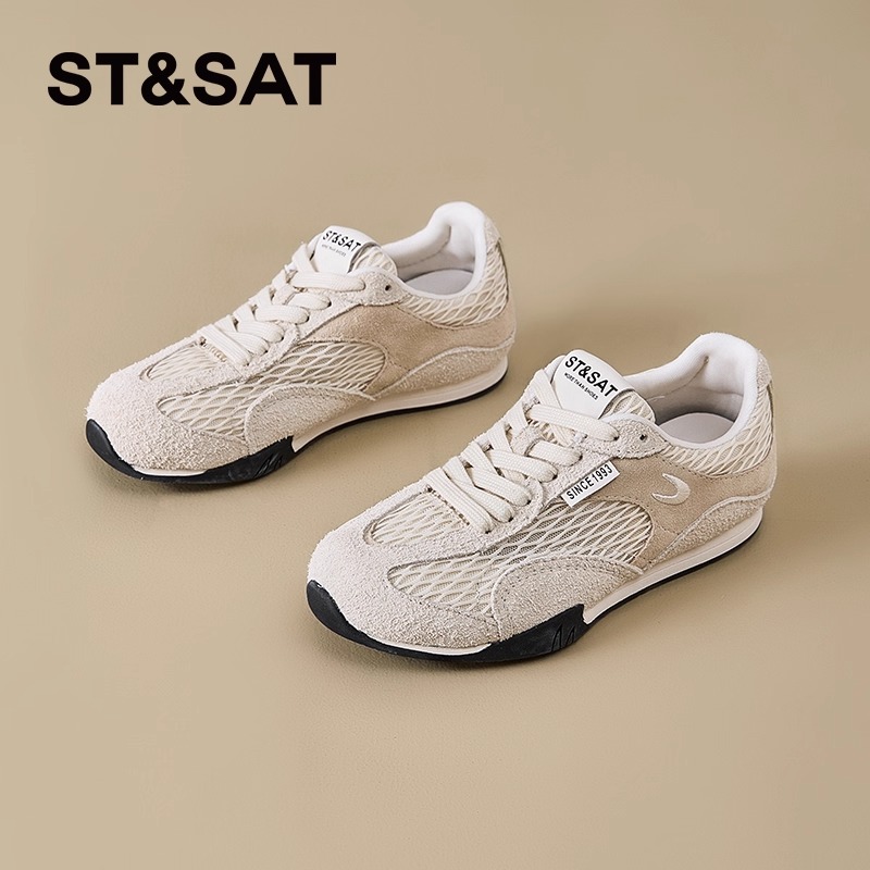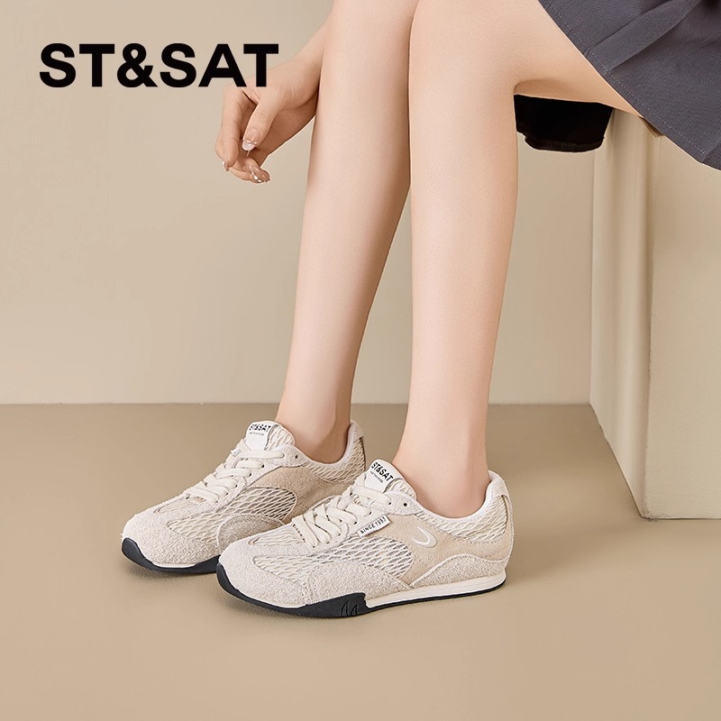 红色运动休闲阿甘鞋 德训鞋 百思图小彩糖25秋新款 女 张予曦同款