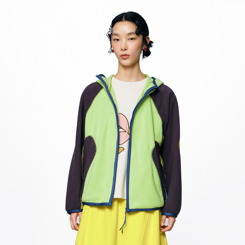 外套女 .FUN系列撞色织带拉链摇粒绒短款 MOVEUP幻走2025秋季 新款