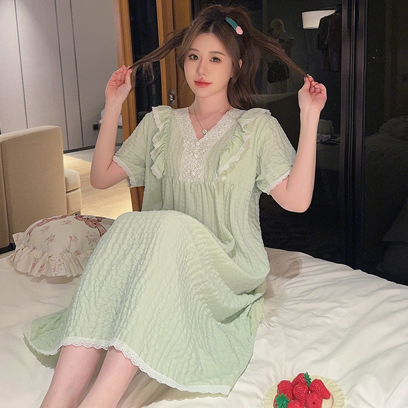 公主风加肥大码 跨境睡衣女夏季 睡裙韩版 云朵棉短袖 胖mm家居服 新款