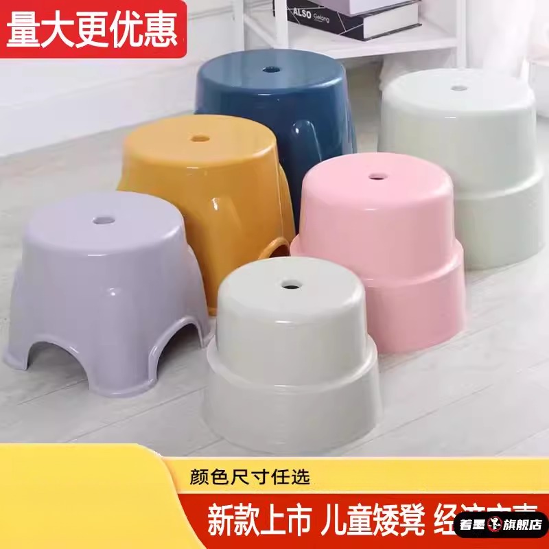 出租屋椅子加厚塑料凳子圆形桶凳茶几浴室小号板凳换鞋 凳家用儿童