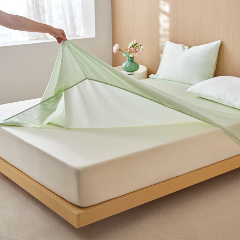 A母婴级水洗棉床笠单件纯色床罩三件套席梦思床垫保护套防滑床单