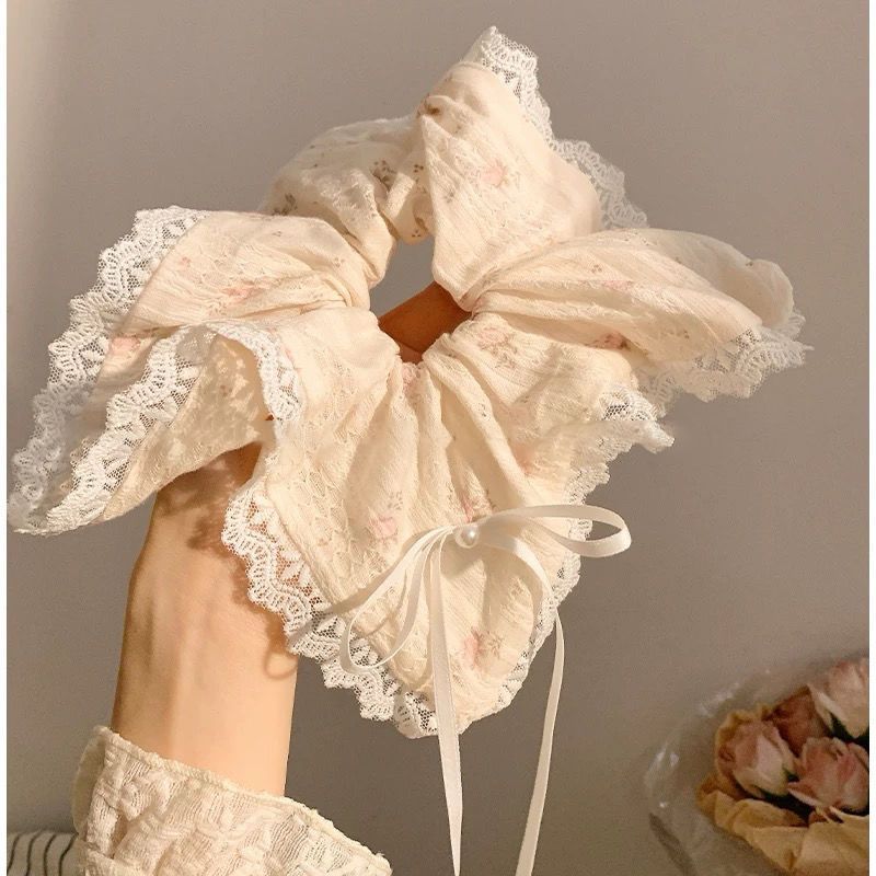 爆款 韩系蓝色蝴蝶结爱心方巾大肠发圈女高级感超大扎头发头绳方形