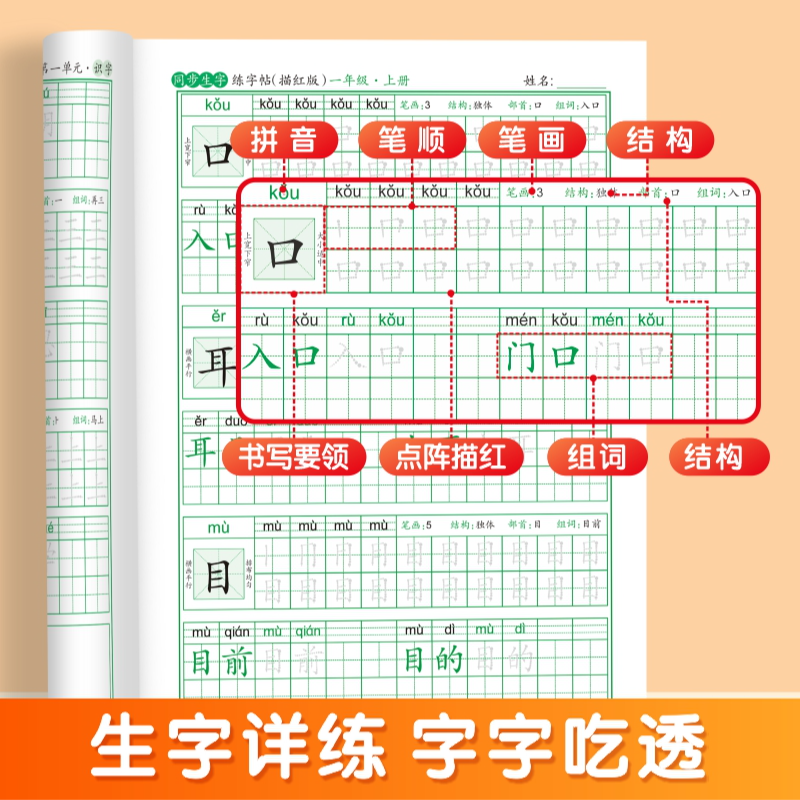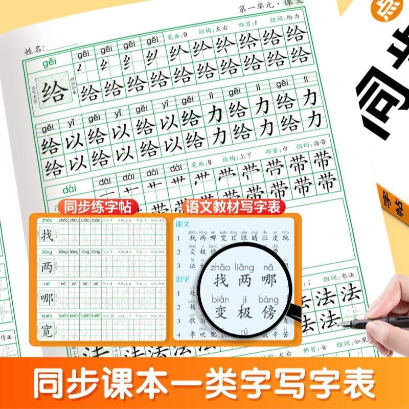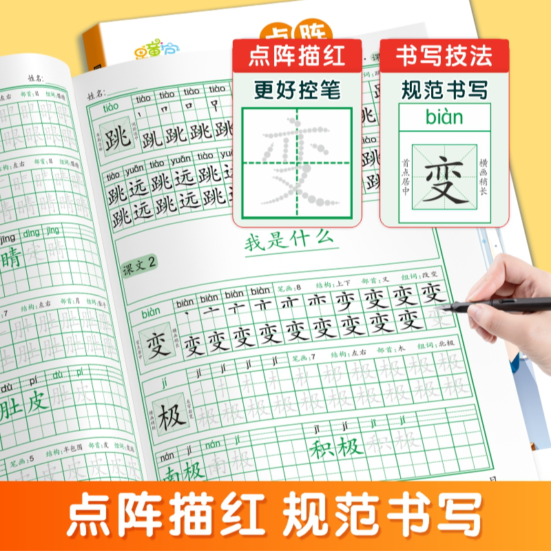 25年新版 同步生字 小学一二年级上下册控笔训练描红本练字帖 点阵版