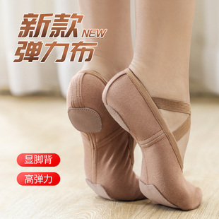 舞蹈鞋 成人女练功软底中国舞弹力布猫爪儿童女童不累脚真皮黑色