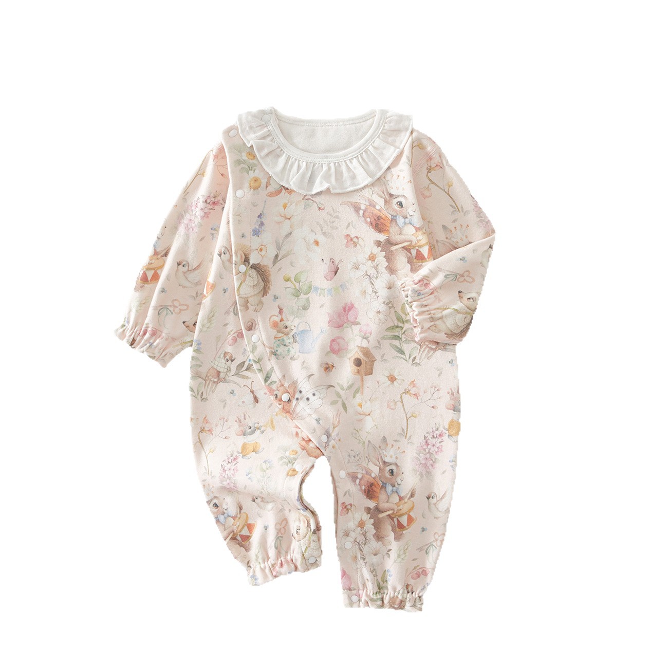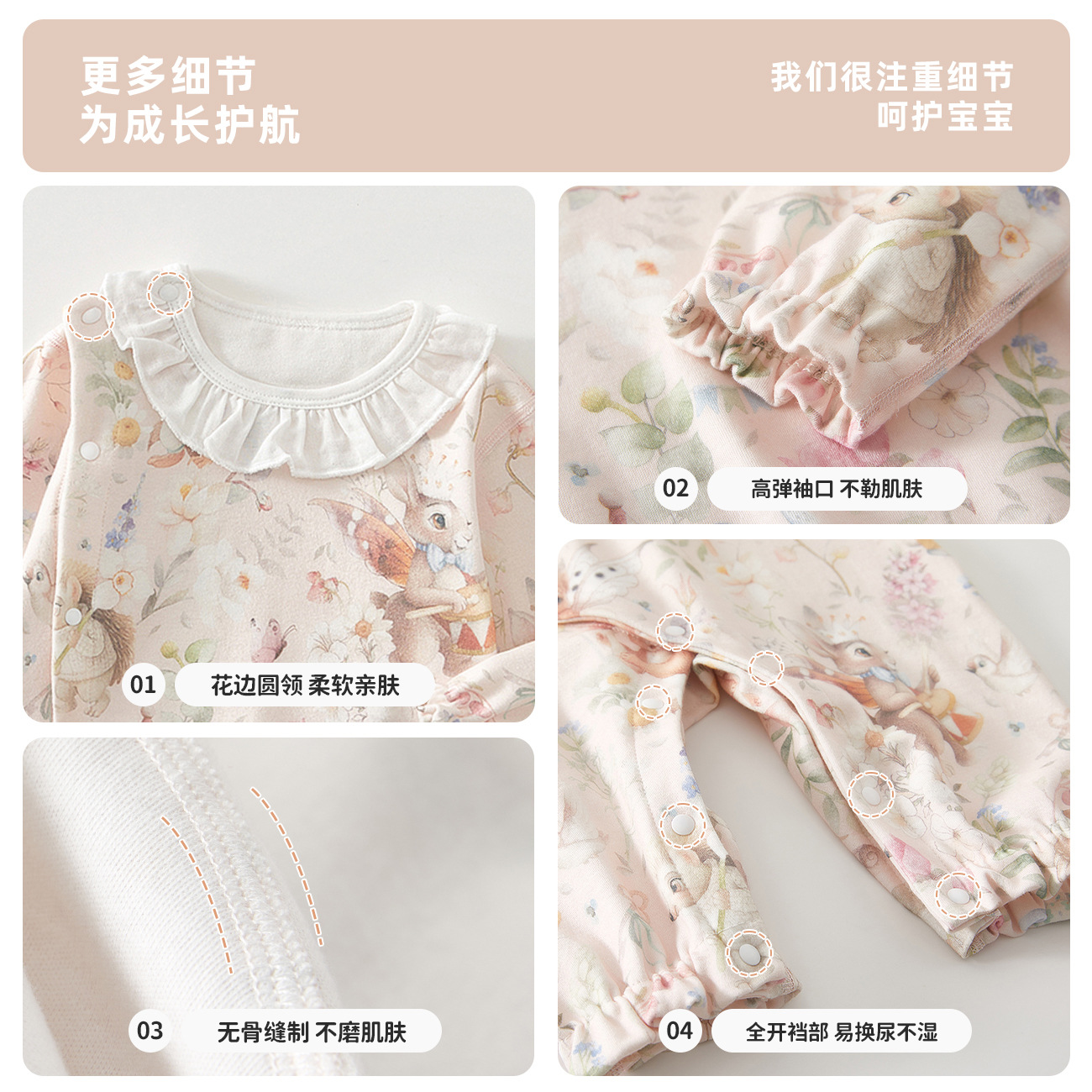女宝宝婴儿连体衣秋冬季 满月宝宝衣服外出服甜美风纯棉哈衣爬服秋