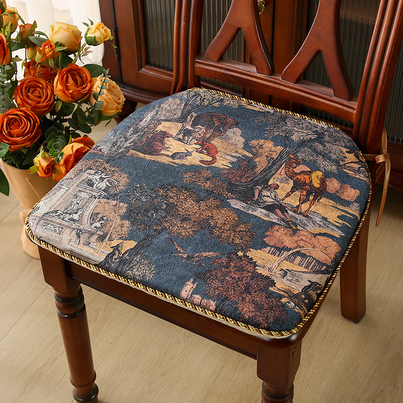 椅子坐垫美式 复古高级感实木餐椅垫田园风加厚海绵马蹄垫现代简约